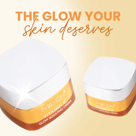 Give Your Skin a Daily Radiance Boost with the ME-ON Vitamin C Glow Boosting Cream Get rid of drabness and embrace a glowing complexion from the inside out. Designed to revitalize tired skin, balance out your complexion, and offer a strong defense against environmental stressors, this ultra-nourishing moisturizer is more than just a hydrating base. This cream turns dull skin into a vibrant, healthy-looking canvas, making it ideal for people looking for that “glass skin” finish.